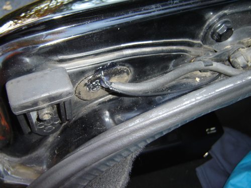 I used a small dollop of marine grade sealant onto the trunk plug where the wire runs into it. We all know that VWs don't need any extra water leaks..